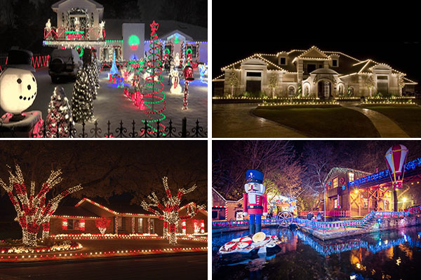 Package B: $800-Door Decor (We Deck Your Door! Choose Garland, Wreaths, or Potted Plant lighting)-Pathway lighting floor to driveway -LED yard decor -Bushes/trees 6' or below (up to 6) -Single-floor columns (up to 4) |